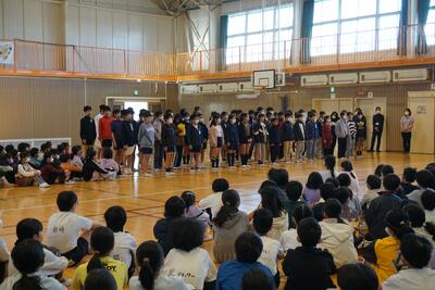 朝日小学校からは、6年1組と6年2組が代表で出場しました。