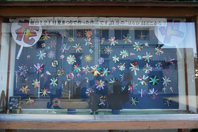 前回に続き朝日1・2丁目の夏祭りで参加した子供たちが作った花火が打ちあがっています。