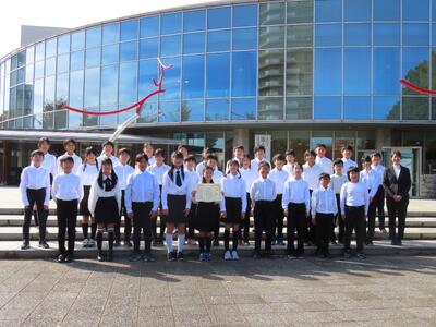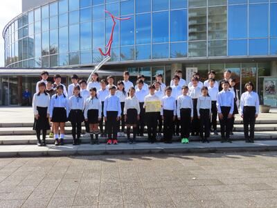 朝日小学校の5年1組は「地球星歌」を歌いました。練習の成果を発揮し、とても美しいハーモニーを奏でました。