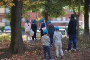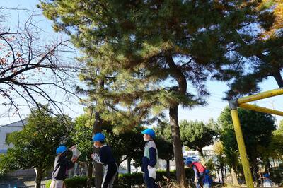 今年は、風の強い日があまりないせいか、松ぼっくりが少なく、多くの子が松ぼっくりを一生懸命探していました。