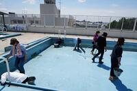 プール清掃を1~3時間目に5・6年生が行いました。