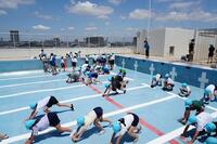 高学年とボランティアの皆さんのおかげで今年も水泳の授業を無事に行うことができます。