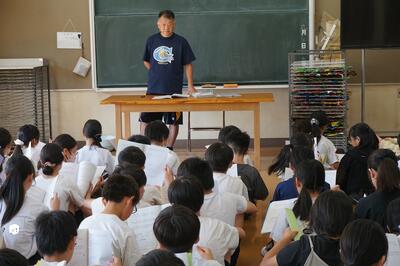昨日と同様、測定前に養護教諭から「健康な生活を送るために大切なこと・けがをしないために」のお話がありました。