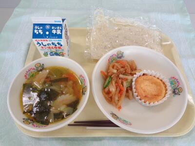 チーズケーキは、給食室で調理員さんたちが手作りをしてくれました。
