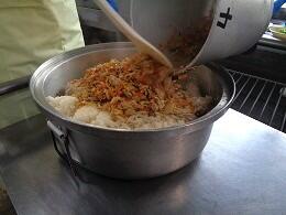 炊いたごはんに具を混ぜます。酢飯のいい香りがしていました。