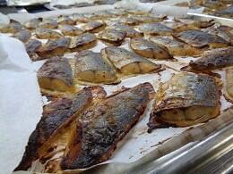 焼き魚は、旬のさわらに深谷ネギとみそで味つけして、給食室で焼きました。