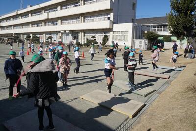休み時間のジャンピングボード(縄跳び練習台)は大人気!