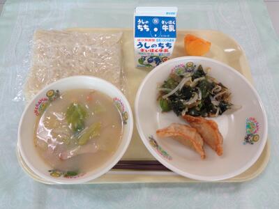 11/27の給食 投稿: 管理者 (12:36) <今日のこんだて> とんこつラーメン 牛乳 揚げ餃子 海草サラダ かき 今の季節においしい「かき」が登場しています。 給食室で調理員さんたちが、およそ410人分を切り分けてくれました。 給食をとおして、自然の恵みや育ててくれた農家さん、作ってくれた調理員さんに「ありがとう」の気持ちをもって、いただきましょう。 Tweet -