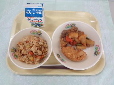 12/1の給食 投稿: 管理者 (12:18) <今日のこんだて> ぶた肉とさつまいもの炊き込みごはん 牛乳 お麩のカツ べっこう煮 旬のさつまいもを使った炊き込みご飯は、季節を感じられますね。 お麩のカツは、初めての登場です。甘じょっぱい味が染み込んだ車麩に衣がついています。 外は、サクッと、中はふわっとしていて、食感も楽しめます。 Tweet -