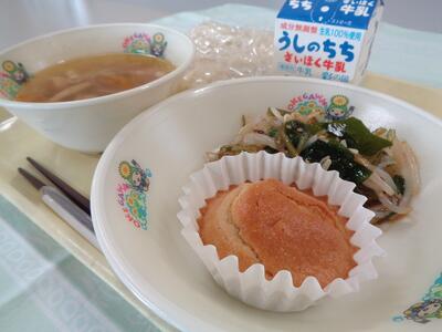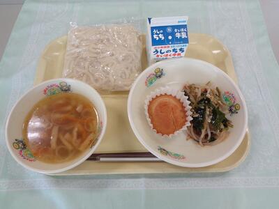 3/5の給食 投稿: 管理者 (12:30) <今日のこんだて> 白だし関西風うどん 牛乳 海草サラダ キャラメルマフィン うどんつゆは、いつもは「さば」「かつお」ぶしを使っていますが、今日は「かつお」「昆布」からだしをとり、透き通ったうどんつゆです。 キャラメルマフィンは、給食室で手作りをしたカップケーキです。 こんがりきつね色に焼きあがっています。 Tweet -