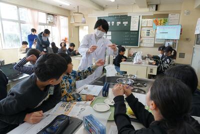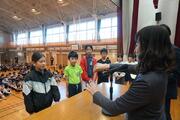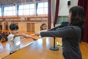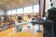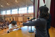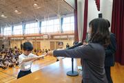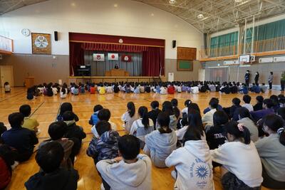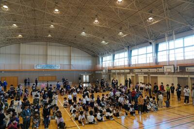 1・2時間目に3・4年生が体育館で行い、3・4時間目に5・6年生が行いました。